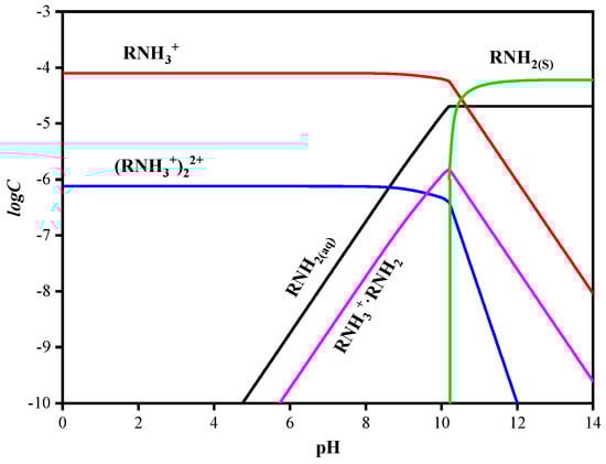 The lgC-pH curves of dodecylamine at the concentration of 0.8 × 10−4 mol/L.
