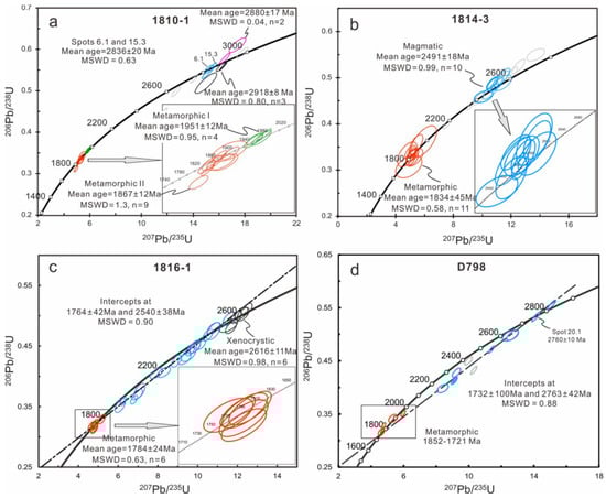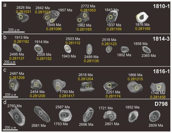 - Grant, M.L.; Wilde, S.A.; Wu, F.Y.; Yang, J.H. The application of zircon cathodoluminescence imaging, Th-U-Pb chemistry and U-Pb ages in interpreting discrete magmatic and high-grade metamorphic events in the North China Craton at the Archean/Proterozoic boundary. Chem. Geol. 2009, 261, 155–171. [Google Scholar] [CrossRef]