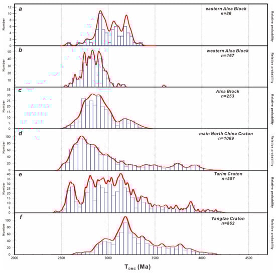 - Jahn, B.; Auvray, B.; Shen, Q.; Liu, D.; Zhang, Z.; Dong, Y.; Ye, X.; Zhang, Q.; Cornichet, J.; Mace, J. Archean crustal evolution in China: The Taishan complex, and evidence for juvenile crustal addition from long-term depleted mantle. Precambrian Res. 1988, 38, 381–403. [Google Scholar] [CrossRef]