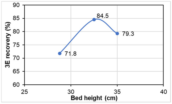 Effect of bed height (BH) on 3E recoveries (AFR = 15 L/h; WFR = 150 L/h).