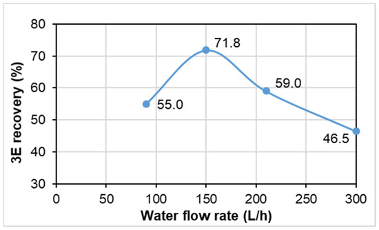 Effect of water flow rate (WFR) on 3E recoveries (AFR = 15 L/h; BH = 32.5 cm).