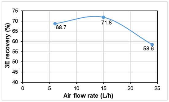 Effect of air flow rate (AFR) on 3E recoveries (WFR = 150 L/h; BH = 32.5 cm).