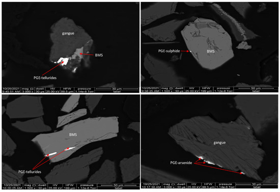 BSE image of the tailings illustrating associations between gangue, PGM and BMs.