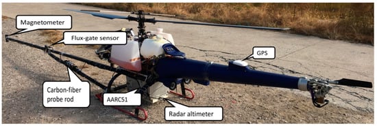 - Hitoshi, M.; Satoshi, T.; Yumiko, O.; Shigeo, M.; Masayuki, S.; Eri, O.; Takuya, S.; Isamu, Y.; Shigekazu, K.; Tatsuya, N.; et al. A Development of Airborne survey of Gravity and Magnetics on an unmanned helicopter and its data processing. In Proceedings of the Japan Geoscience Union meeting, Toyko, Japan, 22 May 2013. [Google Scholar]