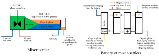 Several repetitions of the extraction and scrubbing steps are required to obtain the desired degree of purity of the organic phase. The required number of contacts to achieve a targeted product purity (usually +99%) are parameters that need to be estimated for each separation circuit (SX boxes in Figure 2).