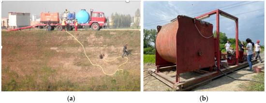 (a) Cement and bentonite injections on site; (b) typical site machines.