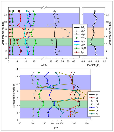 - Sun, S.; McDonough, W.F. Chemical and isotopic systematics of oceanic basalts: Implications for mantle composition and processes. In Geological Society; Special Publications: London, UK, 1989; Volume 42, pp. 313–345. [Google Scholar] [CrossRef]