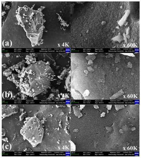 The morphologies and chemical composition of the Pitch AC were observed by field-emission scanning electron microscopy (FE-SEM, ZEISS sigma500, ZEISS, Jena, Germany) and energy dispersive X-ray spectrometer (EDX, XFlash 6-60, BRUKER, Billerica, MA, USA), respectively. Before imaging their surfaces, the prepared Pitch AC and YP-50F were coated with platinum to minimize the charging effects that occur during SEM analysis. The SEM-EDX analysis was performed under the conditions of 5.0 × 10−5 Pa of pressure and 5 kV of accelerating voltage.