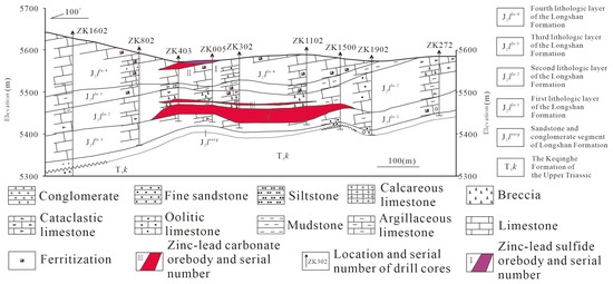 Distribution of ore bodies and their contact relationships with surrounding rocks in the Huoshaoyun zinc–lead deposit [30].