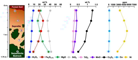 - Putzolu, F.; Boni, M.; Mondillo, N.; Maczurad, M.; Pirajno, F. Ni-Co enrichment and High-Tech metals geochemistry in the Wingellina Ni-Co oxide-type laterite deposit (Western Australia). J. Geochem. Explor. 2019, 196, 282–296. [Google Scholar] [CrossRef]