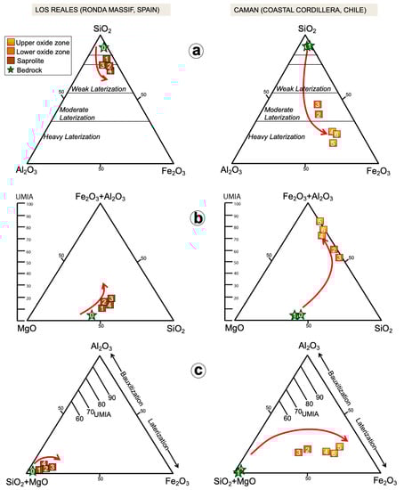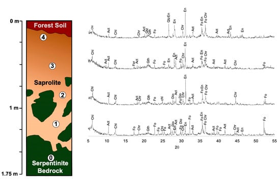 - Bucher, K.; Stober, I.; Muller-Sigmund, H. Weathering crusts on peridotite. Contrib. Miner. Petrol. 2015, 169, 52. [Google Scholar] [CrossRef]