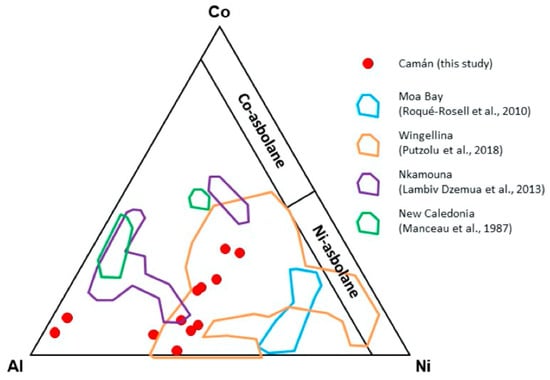 - Aiglsperger, T.; Proenza, J.A.; Galí, S.; Longo, F.; Roqué-Rosell, J. Geochemical and mineralogical survey of critical elements (PGE, REE, Sc and Co) in Ni laterites from the Caribbean. EGU Gen. Assem. 2019, 21, 1. [Google Scholar]