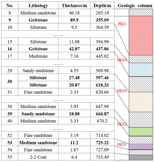 3.1. Analysis of the Overlying Thick and Hard Roof Characteristics