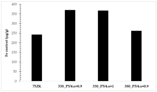 Generally, it can be established that the Fe content of the ground samples is slightly higher than that of the unground sample (75ZK). A larger amount of Fe contamination (~100 µg/g) of ground samples was obtained at 330 rpm (up to 75 min of grinding) than at 380 rpm (up to 20 min of grinding). This means that the Fe contamination of the MCA can be reduced by a higher rotational speed. This is probably due to the fact that a shorter grinding time is required to achieve the same amorphization degree because of the higher number of collisions. At a rotational speed of 330 rpm, there was almost no change in the Fe content, while the degree of amorphization increased from 0.9 to 1.