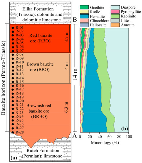 - Abedini, A.; Mongelli, G.; Khosravi, M.; Sinisi, R. Geochemistry and secular trends in the middle–late Permian karst bauxite deposits, northwestern Iran. Ore Geol. Rev. 2020, 124, 103660. [Google Scholar] [CrossRef]