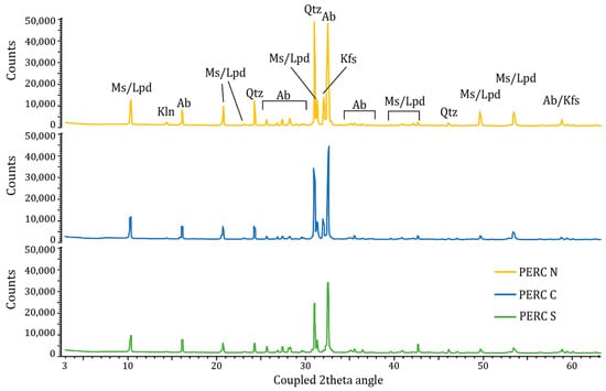 X-ray diffractograms of the bulk sample from PERC N, C and S drill holes.