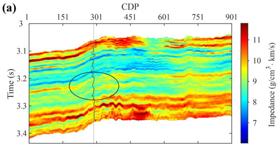 Currently, the regularized inversion methods available for impedance prediction can be divided into two main categories: Type one is Tikhonov regularization inversion. This kind of method employs the L2 norm [6,7] or Gaussian prior distribution [8] to constrain the solution and force it to satisfy the smoothness condition. Unfortunately, these methods can blur sharp impedance edges and produce over-smooth solutions [9,10], which is detrimental to fine reservoir characterization. Another type is sparsity regularized inversion. This type of approach constrains the solution by using sparse norms or long-tailed distributions, imposing it to exhibit blocky features. Typical sparse regularization for impedance inversion includes total-variation regularization [11,12,13,14], L0 norm [15], L1 norm [16,17], L1-2 norm [18,19], Lp (0 < p < 1) norm [20], and Cauchy distribution [21,22]. Although sparse regularization preserves important edge information, it is inadequate for describing the prior information of rock impedance. The reason is that subsurface strata usually contain edge discontinuities that separate two smooth regions [9,10], while sparse regularization can only identify a single sharp property and cannot effectively characterize the smooth structures of stratigraphy. Similar to sparse regularization, Tikhonov regularization is also unable to model both smooth and sharp features of subsurface strata. Therefore, the regularized inversion methods mentioned above are ineffective in obtaining unbiased impedance estimation [14,23]. Additionally, these methods perform a trace-by-trace inversion, which ignores the lateral coherence between seismic traces [24,25,26,27,28].