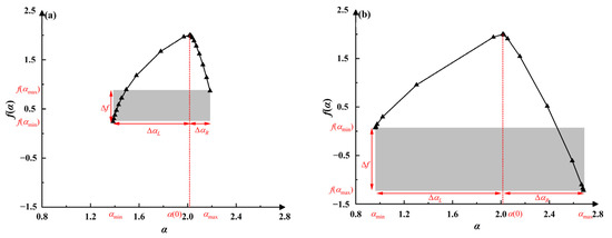 The function f(α) is referred to as the multifractal spectra function, which corresponds to the box dimension with the same α in fractals. Different subsets of α values have different fractal dimensions represented by f(α).
