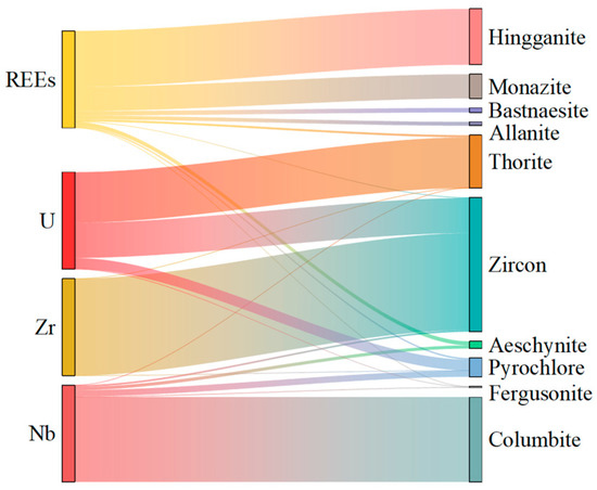 Sankey diagram of REEs, U, Zr, and Nb distribution in different minerals.