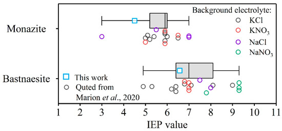 The IEPs of monazite and bastnaesite measured in this work and reported previously [10].
