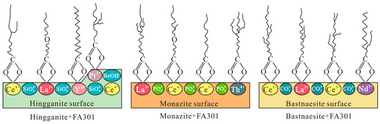 The composite collector FA301 chemically adsorbed onto the surface of hingganite, monazite, and bastnaesite, with the carboxyl group serving as the main functional group contributing to the collection effect.