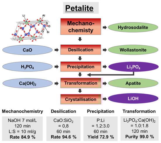 Flowchart of the mechanochemical extraction of lithium from petalite.