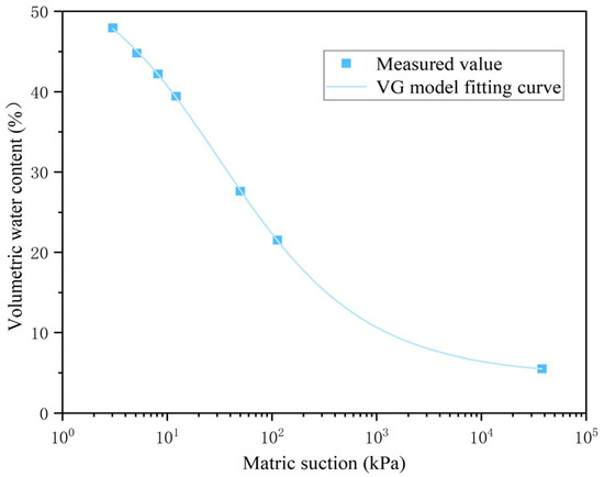 According to the above experimental methods, the SWCC test results were obtained, as shown in Table 2. There are many theories and methods to describe the SWCC. Among the SWCC models, the representative is the Van Genuchten (VG) model, and the SWCC is described by the VG model [25] as follows: