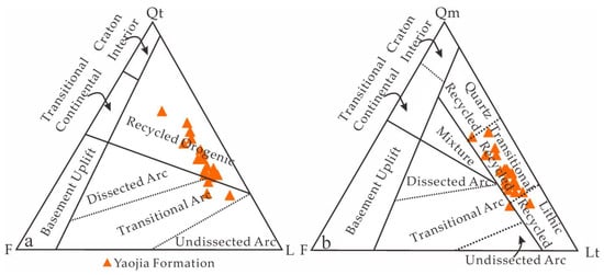 (a) Qt-F-L and (b) Qm-F-Lt discrimination diagrams of the Yaojia Formation in the SW Songliao Basin (after Dickinson and Suczek []).