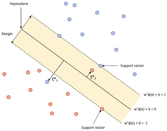 Support Vector Machine is a powerful supervised learning algorithm proposed by Cortes and Vapnik [23] in 1995. The core principle behind the SVM algorithm is to transform the input features into a higher-dimensional space using a process known as the kernel trick. Within this transformed space, the algorithm seeks to linearly separate the data classes using a high-dimensional surface, commonly referred to as a hyperplane, as illustrated in Figure 2.