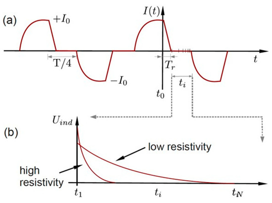 - Lee, T. Transient electromagnetic response of a polarizable ground. Geophysics 1981, 46, 1037–1041. [Google Scholar] [CrossRef]