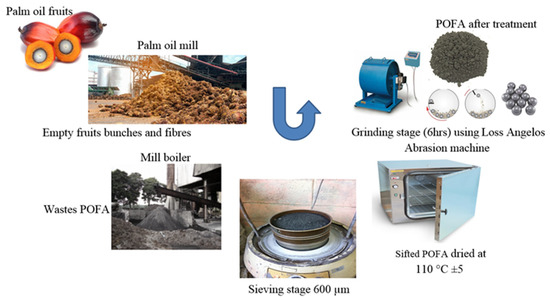 POFA treatment and processing including collection, sieving, drying, and grinding [48].