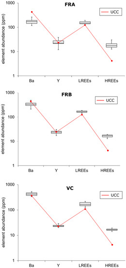 - Caggianelli, A.; Fiore, S.; Mongelli, G.; Salvemini, A. REE distribution in the clay fraction of pelites from the southern Apennines, Italy. Chem. Geol. 1992, 99, 253–263. [Google Scholar] [CrossRef]