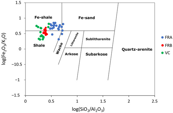 - Bauluz, B.; Mayayo, M.J.; Fernandez-Nieto, C.; Gonzales Lopez, J.M. Geochemistry of Precambrian and Paleozoic siliciclastic rocks from the Iberian Range (NE Spain): Implications for source-area weathering, sorting, provenance, and tectonic setting. Chem. Geol. 2000, 168, 135–150. [Google Scholar] [CrossRef]