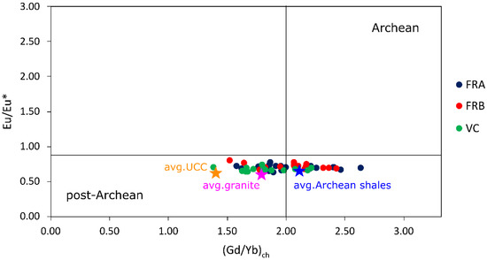 - Condie, K.C. Chemical composition and evolution of the upper continental crust: Contrasting results from surface samples and shales. Chem. Geol. 1993, 104, 1–37. [Google Scholar] [CrossRef]
