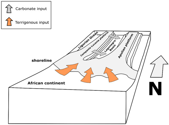 - Di Leo, P.; Dinelli, E.; Mongelli, G.; Schiattarella, M. Geology and geochemistry of Jurassic pelagic sediments, Scisti silicei Formation, southern Apennines. Italy Sed. Geol. 2002, 150, 229–246. [Google Scholar] [CrossRef]