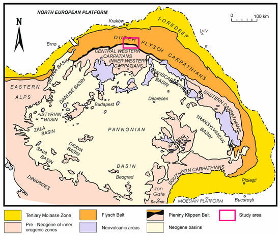 - Golonka, J.; Gahagan, L.; Krobicki, M.; Marko, F.; Oszczypko, N.; Ślączka, A. Plate Tectonic Evolution and Paleogeography of the Circum-Carpathian Region. In The Carpathians and Their Foreland: Geology and Hydrocarbon Resources; Golonka, J., Picha, F., Eds.; American Association of Petroleum Geologists: Tulsa, OK, USA, 2006; Volume 84, pp. 11–46. [Google Scholar] [CrossRef]