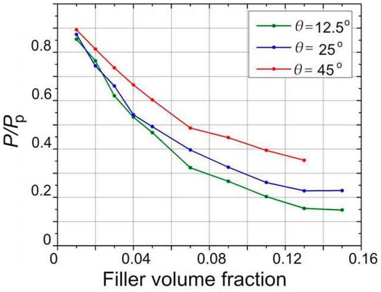 where α and φ are the aspect ratio and volume fraction of the filler particles, and D0 and D are the diffusion coefficients in the pure polymer matrix and nanocomposite, respectively. In Nielsen’s model, permeability decreases linearly with increasing filler aspect ratio, which explains the widespread use of plate-like fillers, such as clay particles or graphene, in nanocomposite barrier films [57,58]. The Nielsen approximation is accurate in the dilute regime but may be inaccurate in the semi-dilute case where the volume fraction of the filler is small φ << 1 but its overlap is large αφ >> 1, as suggested by Cussler et al., who derived the following approximation for 2D geometry [59]: