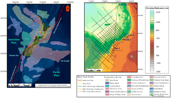 - Sutherland, R.; King, P.; Wood, R. Tectonic evolution of Cretaceous rift basins in southeastern Australia and New Zealand: Implications for exploration risk assessment. In Eastern Australasian Basins Symposium; Hill, K.C., Bernecker, T., Eds.; Petroleum Exploration Society of Australia Special Publication; Petroleum Exploration Society of Australia: Perth, Australia, 2001; pp. 3–13. [Google Scholar]