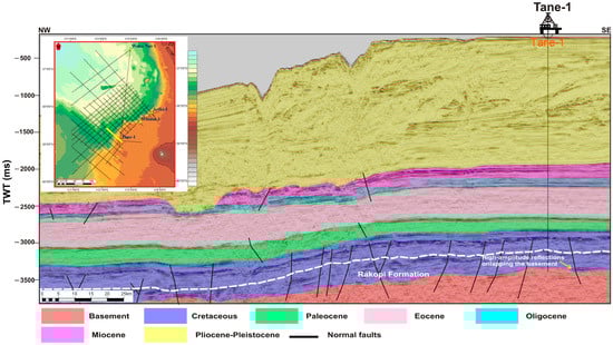 - Leila, M.; El-Sheikh, I.; Abdelmaksoud, A.; Radwan, A.A. Seismic sequence stratigraphy and depositional evolution of the Cretaceous-Paleogene sedimentary successions in the offshore Taranaki Basin, New Zealand: Implications for hydrocarbon exploration. Mar. Geophys. Res. 2022, 43, 23. [Google Scholar] [CrossRef]