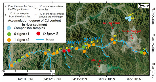 Seventeen sediment samples from the Wenyu stream were analyzed using the geoaccumulation index. The geoaccumulation index was first developed by Mǜller in 1969 [9] and is a quantitative research method used to study the pollution degree of PTEs in water environment sediments. The formula is: