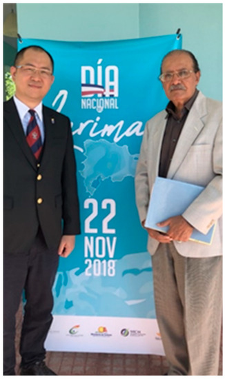 Photo of Yu-Hong Shih (left), the second author of this article, and Miguel Méndez (right), the discoverer of Larimar, who met at the first Dominican National Congress, where the conference defined Larimar as the National Stone of the Dominican Republic.