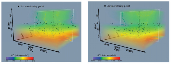 Figure 3. Contour plots and volume rendering of gases including CO, SO2, PM2.5, and CO2 [43].