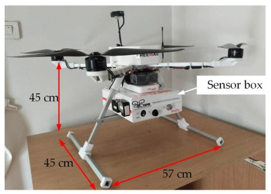 Chemical sensors: Nguyen, et al. [43] utilised a DJI Inspire 2 drone equipped with air sensors to conduct air quality monitoring in their study. This allowed for the safe flight of the drone while collecting data on four main pollutants: PM2.5, CO, CO2, and SO2. The monitoring system consisted of both electrochemistry sensors and laser dust sensors. The laser dust sensor had a measurement range of 0–500 μ g / m 3   , precision of ±10%, and a resolution of 0.3 μ g / m 3 . The electrochemistry sensors for CO2 and CO had a measurement range of 0–750 ppm, precision of 5% ppm, and a resolution of 1 ppm, while the SO2 sensor had a measurement range of 0–20 ppm, precision of 5% ppm, and a resolution of 0.1 ppm. The sensors were mounted onto the drone, creating a UAV multi-sensor collector (UAV-MSC) system that could monitor multiple air components simultaneously. Figure 7 shows a chemical sensor box mounted on a UAV.
