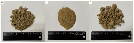 Three different solid ore samples before the experiment. ((a). clay + halite (sample 1); (b). clay (sample 2); (c). relatively clean halite (sample 3)).