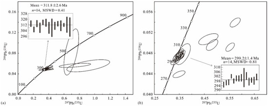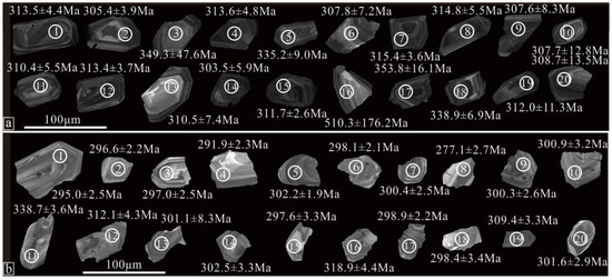 - Jiang, Z.S.; Wang, D.C.; Zhang, Z.H.; Duan, S.G.; Kang, Y.J.; Li, F.M. Application of in situ titanite U–Pb geochronology to volcanic-hosted magnetite deposit: New constraints on the timing and genesis of the Zhibo deposit, Western Tianshan, NW China. Ore. Geol. Rev. 2018, 95, 325–341. [Google Scholar] [CrossRef]