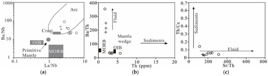 - Green, T.H. Significance of Nb/Ta as an indicator of geochemical processes in the crust–mantle system. Chem. Geol. 1995, 120, 347–359. [Google Scholar] [CrossRef]