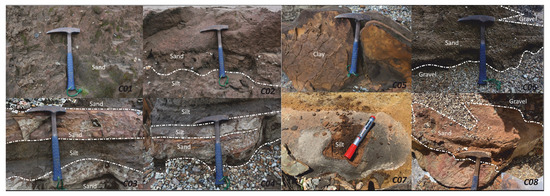 | 8 | 50 cm | C08 | Poorly graded sandy gravel, with clays | Qz, Ms, Sp, Mnt, Sd |
