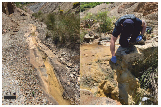 - Podda, F.; Medas, D.; De Giudici, G.; Ryszka, P.; Wolowski, K.; Turnau, K. Zn biomineralization processes and microbial biofilm in a metal-rich stream (Naracauli, Sardinia). Environ. Sci. Pollut. Res. 2014, 21, 6793–6808. [Google Scholar] [CrossRef]