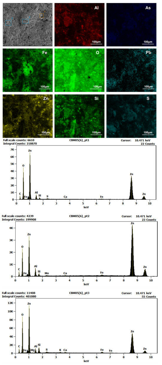 | 5 | 20 cm | C05 | Poorly graded sandy silt with clays | Qz, Ms, Znc, Brt |