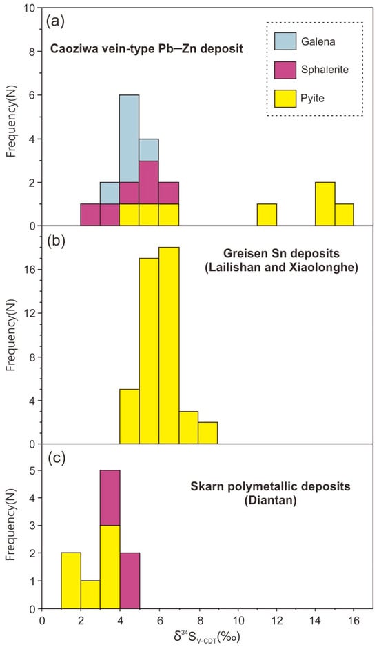 Cheng, Y.; Yang, C.; Deng, M.; Bai, F.; Chen, F. Genesis of Caoziwa Pb–Zn Deposit in Tengchong Block, SW China: Constraints from Sulfur Isotopic and Trace Elemental Compositions of Sulfides. Minerals 2024, 14, 82. https://doi.org/10.3390/min14010082
